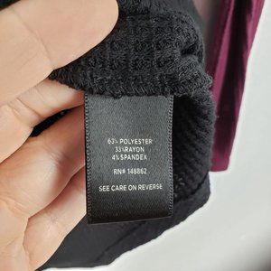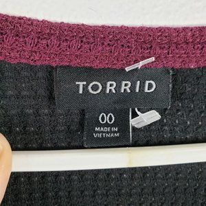 Torrid Women's Size 0 Long Sleeve Waffle Knit Henley Black Burgundy Colorblock