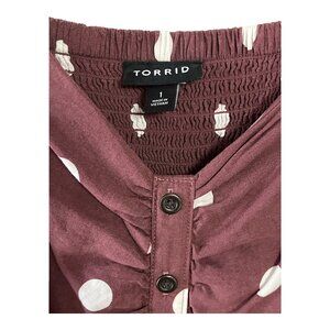 Torrid Women’s Size 1 Maroon Polka Dot Sleeveless Midi Dress with Smocked Bodice