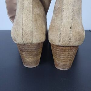 Torrid Womens Size 11W Block Heel Ankle Boots Booties Tan Taupe Suede Pull On