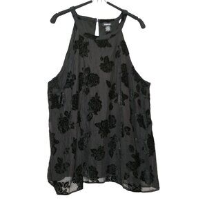 Torrid Womens Size 1X Black Burnout Velvet Halter Top Rose Whimsygoth Romantic