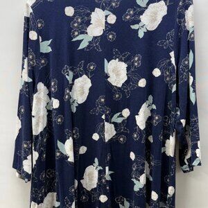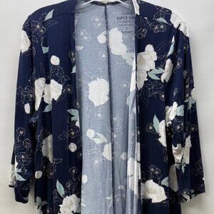 Torrid Women's Size 2 (18/20) Super Soft Open Cardigan Sweater Hi-Lo Floral Blue