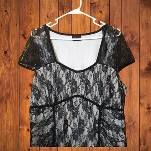 Torrid Women’s Size 2 Short Sleeve Black Lace Overlay Pullover Top Goth Witchy