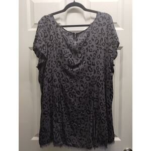 Torrid Women's Size 2X Gray Leopard Cheetah Fringe Hem Short Sleeve Tunic Top