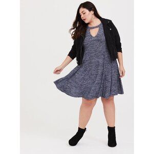 Torrid Womens Size 3 (3X) Mini Rib Knit Mock Neck Dress Blue Stretch
