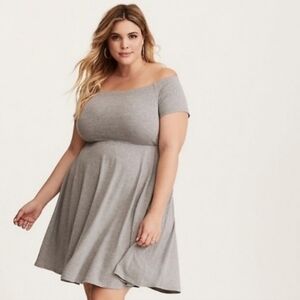 Torrid Grey Off Shoulder Jersey Knit Women's Skater Dress Stretch Size 3/22-24 Casual Comfy Fit Flare Defined Waist Pull Over Gently Pre-Owned Excellent Condition Reasonable Offers Welcome