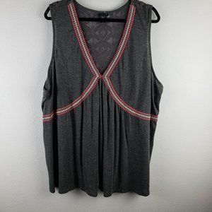 Torrid Women's Size 4 Gray Embroidered Vneck Tank Top Lace Panel Back