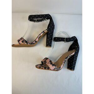 Torrid Women’s Size 8W Floral/Poka Dot Block Heels Open Toe Ankle Straps Sandals