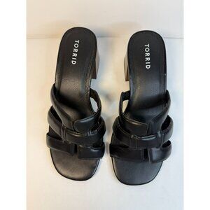 Torrid Womens Size 9.5WW Black Leather Block Heel Sandals Mule Dressy Casual
