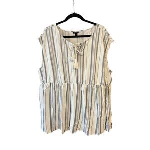 Torrid Women’s Striped Peplum Sleeveless Tassel Tie Blouse White Gray Size 3X