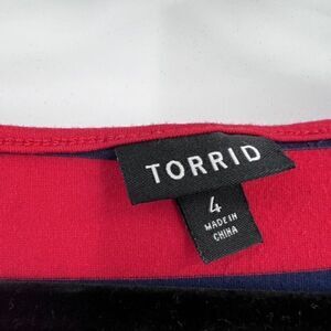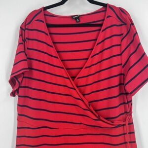 Torrid Womens Striped V Neck Short Sleeve Jersey Knit Faux Wrap Dress Size 4 red blue