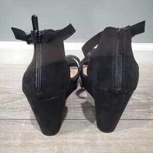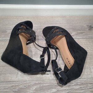 Torrid Women's Sz 10 WW Black Wedge Heels Back Heel Zipper Open Toe Rhinestones. Please let me know if you have any questions. Thanks for looking!
