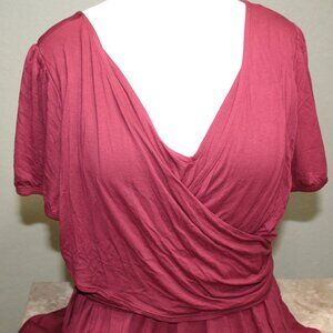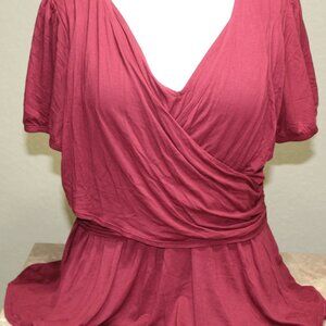 Torrid Women's Top 3X Burgundy Rayon Spandex Puff Sleeve Surplice New
