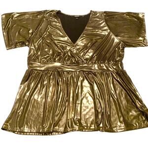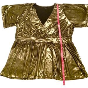 Torrid Womens Top Gold Liquid Shine Surplice Split Sleeve Peplum Plus Size 4X