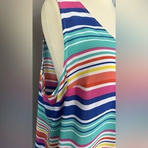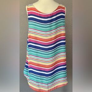 Vibrant and stylish, this sleeveless top features a multicolor striped pattern. Perfect for adding a pop of color to your wardrobe.