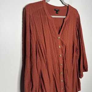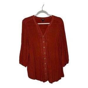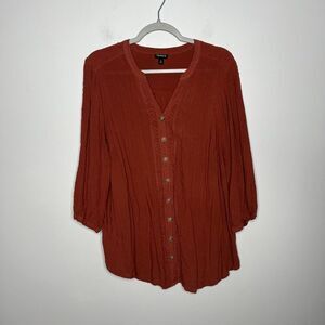 Torrid Womens Top Size 2X Orange Swiss Dot Embrodiered Blouse Button Up Boho