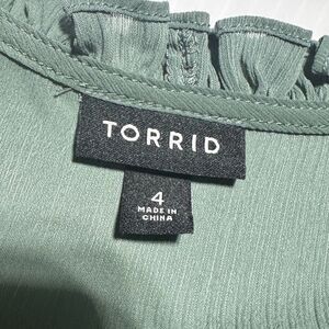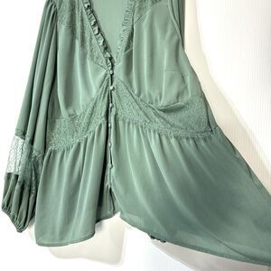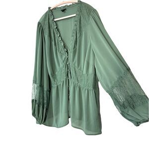 Torrid Women’s Top Size 4X Green Lace Gauze Button Front Peplum Gauzy Blouse