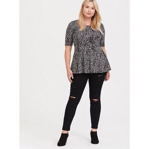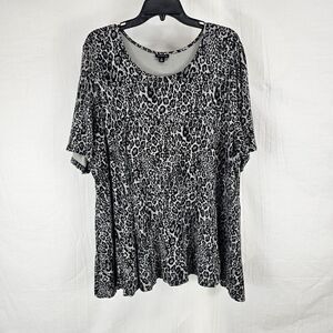 Torrid Womens Top Size 5X Leopard Studio Knit Peplum Shirt Black Gray