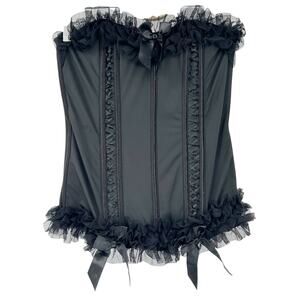 Torrid Womens Whimsigoth Victorian Mesh Ruffled Bow Corset Top in Black. Plus Size 2X.