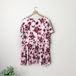 [Torrid] Women's White & Pink Floral Print Short Sleeve Plus Size Top