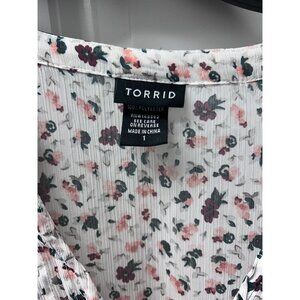 Torrid Women’s White Sheer Hi-Low Surplice Floral Coverup Tunic Plus size 1