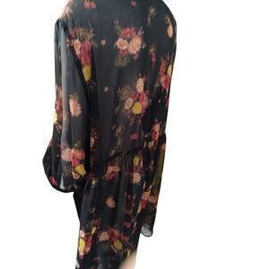 Torrid Women's size 3X Floral Sheer Hi-Low Whimsigoth Witchy Fairygrunge Top Fall Asymmetrical Lagenlook Roll sleeve Flowy Hippie Summer Beachy Feminine Whimsical Boho Dainty Delicate Romantic Elastic Waist Fairy