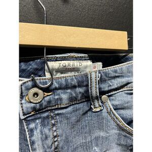 Torrid Women's Cutoff Denim Jean Shorts Size 12 Blue White Lace Stretch Denim