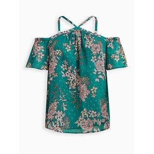 Torrid Women's Plus Size 2 Cold Shoulder Halter Top Crinkle Chiffon Floral Green