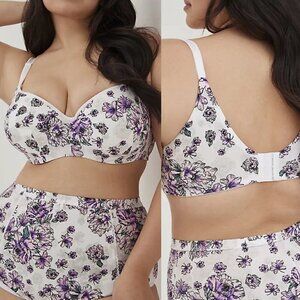 Torrid Womes NWT White Floral Full-Coverage Balconette Lightly Lined Bra 38DDD