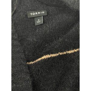 A beautiful black and gold wrap from Torrid. In excellent condition. The garment is a little fuzzy, and we think that this was part of the design, but just want to call it out.
