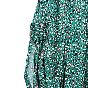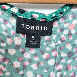 Torrid Wrap Dress NWT Size 5X Green Knit Pebble Print Puff Sleeve Ruffle Hem