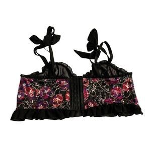 Torrid X Betsey Johnson Floral Print Black Pink Ruffled Longline Bra Size 2 D