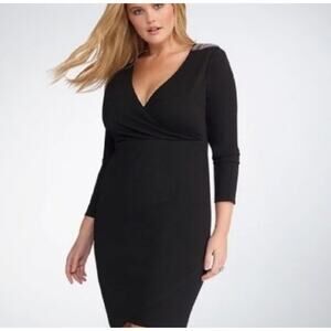 Torrid X Rebel Wilson 2 Black Embellished Faux Wrap Dress Size 2X Plus Glam Rock