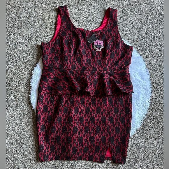Torrid X Rebel Wilson Dress New Lace Black Red Womens Size 24 No Belt