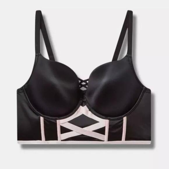 Torrid XO Plunge Push Up Shine Longline Straight Back Bra Size 44D