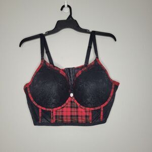 Torrid bra: plus size, red black, plaid, adjustable straps
