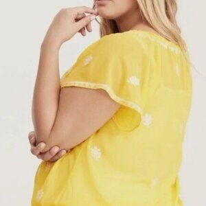Torrid Yellow Embroidered Floral Short Sleeve Blouse - Size 4