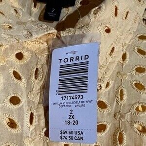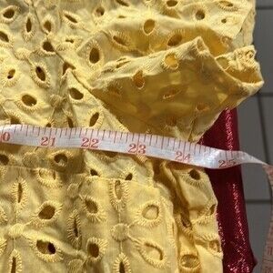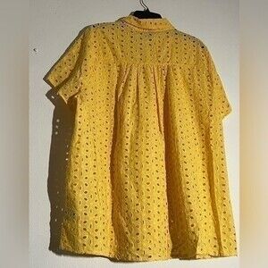 Chic yellow button down shirt. Features eyelet design. Short sleeves. Perfect for casual wear.