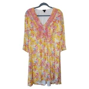Torrid Yellow Floral Embroidered Pleated Dress 1X