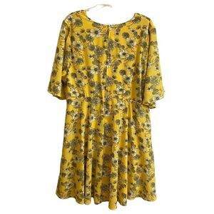 Torrid Yellow Floral Faux Wrap Dress Short Flowy Sleeves Size 20