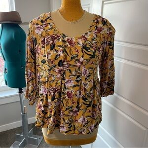 Torrid Yellow Floral Fit and Flare Crinkle Gauze Top