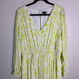 Torrid Yellow Green Floral Mini Wash Gauze Wide Waist Skater Dress 2X 40261123