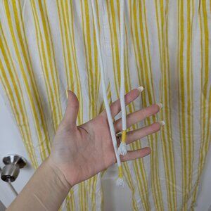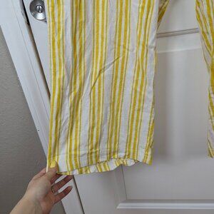 Breezy yellow and white striped lightweight lounge pants with elastic waistband and functional drawstring. Perfect for casual summer days.