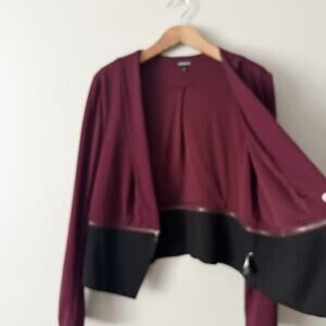 Burgundy and black color block Ponte knit open front cropped jacket/blazer/cardigan