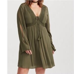 Torrid army olive green slit sleeve tassel boho peasant dress size 0 or Large