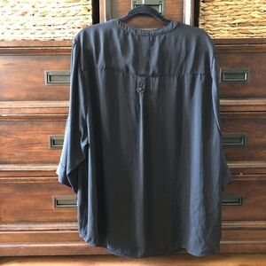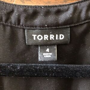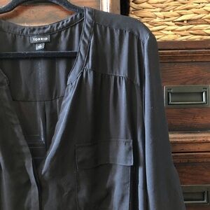 Torrid black Harper roll tab blouse in size 4x. Missing a side button, extra button on back that can be sown on.
