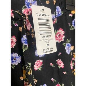 Torrid black floral challis jogger capri pants with elastic tie waist