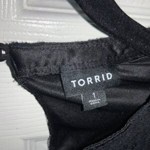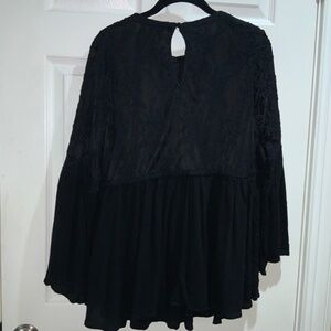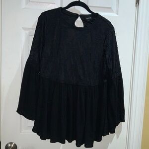 Torrid black lace bell sleeve peplum top Sz 1 (1X) keyhole back