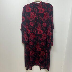 Torrid black red floral longline cardigan. Rose print, lightweight.