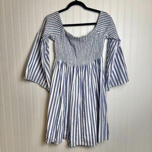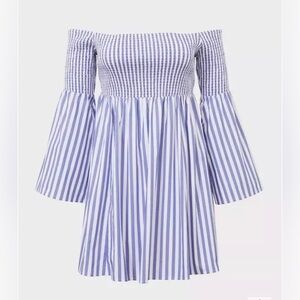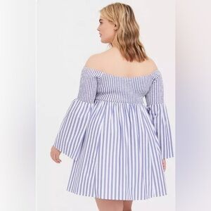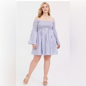 Torrid blue stripe smocked skater dress off shoulder size 1X G9