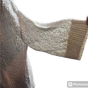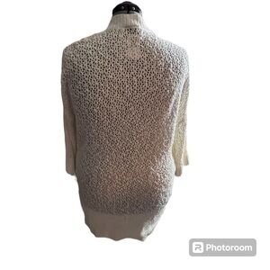 Open Stitch Cardigan Open Front Sweater Cotton blend fabric. First pic is not actual sweater, for reference only. Excellent preowned condition. 68% cotton slub 32% acrylic. Machine wash cold. Line Dry. 34 inches long. Open neckline. 3/4 sleeves. Drop shoulder Open stitch knit. Rib trim